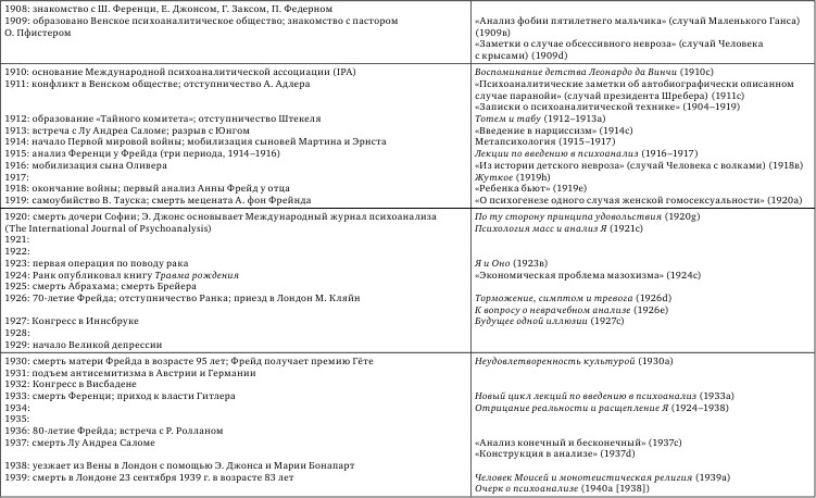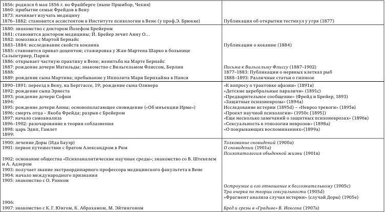 ЗИГМУНД ФРЕЙД (1856–1939) ХРОНОЛОГИЧЕСКАЯ ТАБЛИЦА
