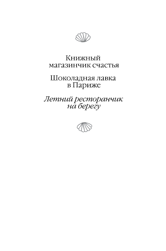 И конечно, мне хочется верить, что вам понравится «Летний ресторанчик на берегу»! Эта книга для меня очень личная. Когда после долгого отсутствия я наконец вернулась домой, на мою родную землю, — как это делает в романе Флора, — я поняла, что родина все это время ждала меня.