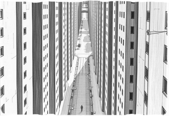 Очевидно, дом располагался на возвышенности. Сколько хватало зрения, повсюду тянулись безликие многоэтажки. Посмотрев вниз, обнаружил ровную полоску пустынной улицы, упиравшейся в подобие сквера…