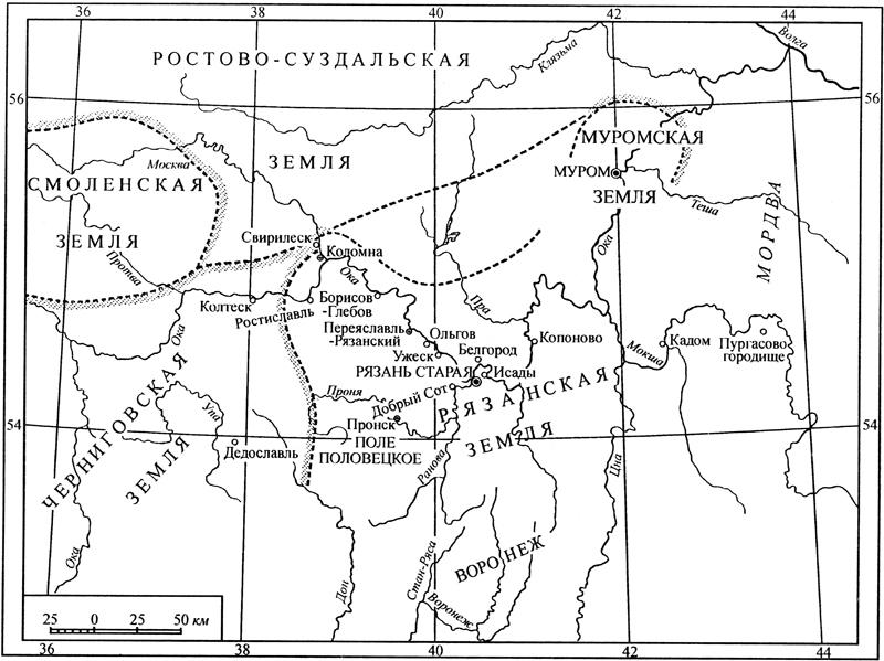 Рязанское и Муромское княжества в XIII в. Границы указаны схематически.