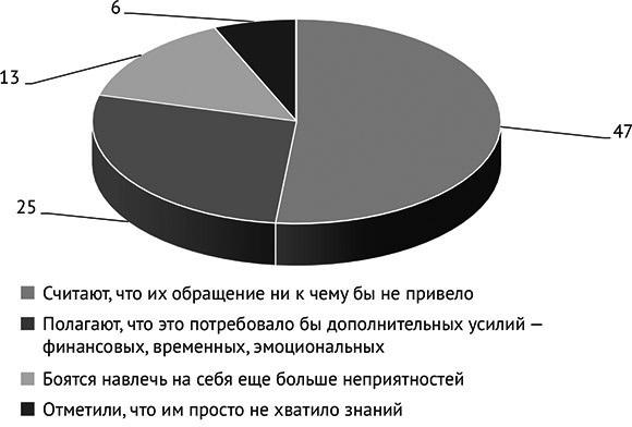 Диаграмма 2. Причины, по которым люди ничего не предпринимают для защиты своих прав (количество ответивших респондентов в %)