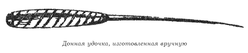 Естественное донное удилище делается из ореха, березы, а лучше всего можжевельника (называемого местами вереск, вересовник); оно должно быть не короче аршина и не длиннее двух, должно быть не слишком тонко в комле и не очень жидко, особенно если приходится удить в быстротекущей воде. По большей части у естественных донных удилищ комли бывают слишком тонки, что чрезвычайно утомительно для руки; лучше обертывать их камышом, который затем довольно часто и туго обматывается бечевкой. Эта камышовая рукоять должна быть не короче пяти вершков; иначе трудно сделать ее аккуратно. Такое удилище можно использовать с бубенчиком и без него; в первом случае необходимо приделать острие для втыкания в берег или лодку.