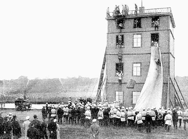 Праздник пожарной дружины в Лигово. Учение дружинников. Фото К. Буллы, 1903 год