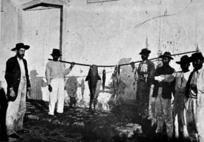 (Notice men with heads wrapped owing to torturing insects.)