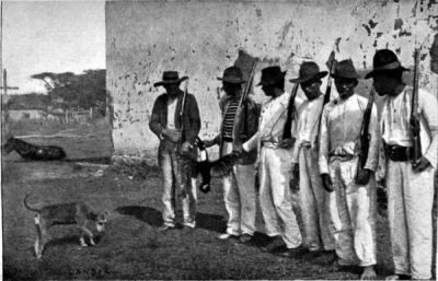 I was walking along the rocks, saying to my men that I would be back in a few minutes, when a huge cachorra, or dog-fish, weighing some thirty pounds, leapt out of the water and fell on the rocks, wriggling and bounding convulsively. I called the men, who hastily arrived, and with the butts of their rifles killed the fish. While they were busy dissecting it, Alcides, who had not taken part in the quarrel, but had gone to the forest some little way off, hearing the noise, reappeared with a huge monkey he had killed.