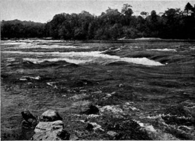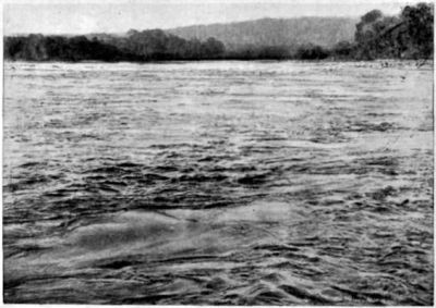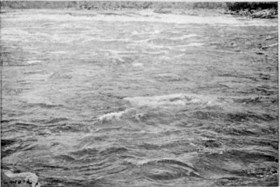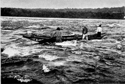 On returning to the bottom of the rapid where I had left the canoe, another most impressive sight was to be seen. In the vertiginous waters emerging from the channel high waves—most unpleasant-looking and in the greatest confusion—clashed against one another for a distance of over 500 m. below the rapid.