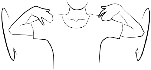 4. Кладем руки на плечи и делаем круговые вращения вперед и назад по 6 раз в каждую сторону.