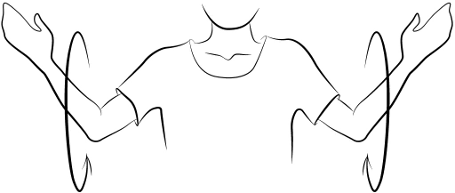 5. Руки вытянуты в стороны. Сгибаем руки в локтях и выполняем вращения. По 6 раз в каждую сторону.