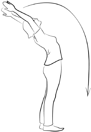 6. Вдохнули, развели руки и на выдохе наклоняемся вперед; возвращаемся в исходное положение, прогибаемся в спине с разведением рук.