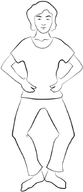 7. Полуприседы, или плие. Пяточки вместе, носочки врозь, руки на пояс. Делаем полуприседы, колени разводим в сторону.