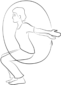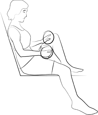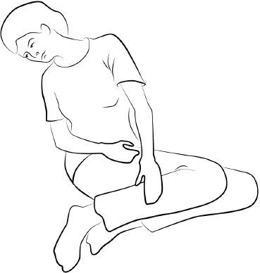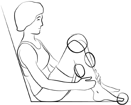 ► 1-я поза. Сидя на кровати, диване, желательно с опорой спины, ноги полусогнуты и чуть расставлены. В этом положении можно делать поглаживание, растирание пальцев ног, голеностопного сустава, ахиллова сухожилия; поглаживание, растирание, разминание, потряхивание икроножных мышц и передних мышц голени; поглаживание, растирание коленного сустава.