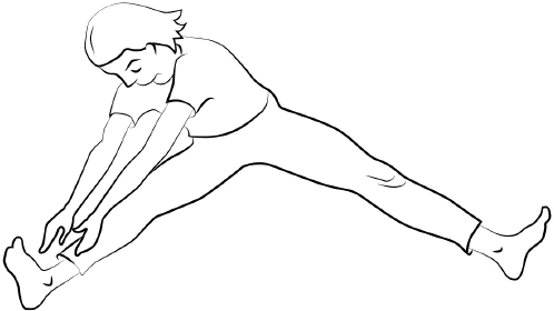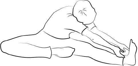 1) Садимся на коврик, разводим ноги как можно шире. Вдохнули, развели руки, потянулись к правой ноге, затем – к левой ноге, вперед между двумя ногами.
