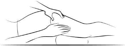 ► 3-я поза. Лежа на боку. Можно делать поглаживание, растирание, разминание, похлопывание, сотрясение и снова поглаживание наружной поверхности бедра.