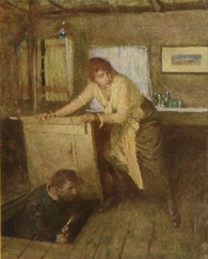 I stooped over the trap-door and lifted it up. "Get down there quick!" — Page 109, The Prairie Wife.