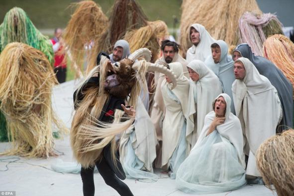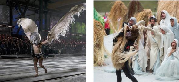 Следует отметить, что Прометей, согласно НИВР, представлял из себя субстанцию, совмещавшую в себе мужское и женское начало. До преображения он выглядел в нашем понимании монстром, с внешностью, довольно близко представленной в театральной постановке мировой знати по истории цивилизации при открытии Готардского туннеля в 2017 г., т. е. первоначально ангелом-монстром женского рода, в дальнейшем демоном со звериной головой. Рис.1 и рис. 2.