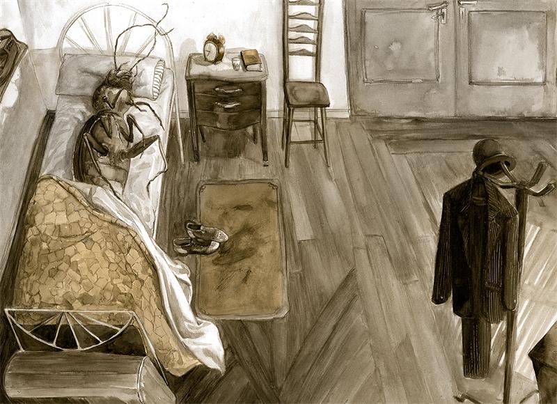 Проснувшись однажды утром после беспокойного сна, Грегор Замза обнаружил, что он у себя в постели превратился в страшное насекомое. Лежа на панцирно-твердой спине, он видел, стоило ему приподнять голову, свой коричневый, выпуклый, разделенный дугообразными чешуйками живот, на верхушке которого еле держалось готовое вот-вот окончательно сползти одеяло. Его многочисленные, убого тонкие по сравнению с остальным телом ножки беспомощно копошились у него перед глазами.