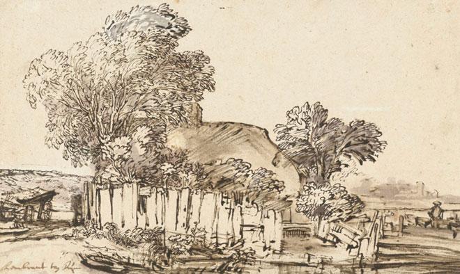 Рембрандт. Коттедж с белым забором, ок. 1648 г.