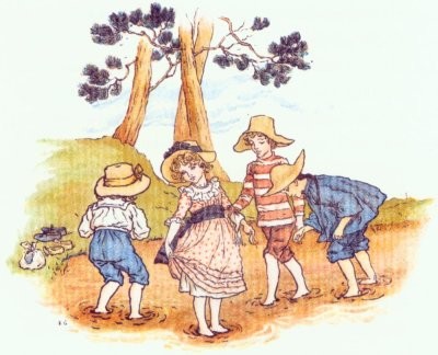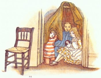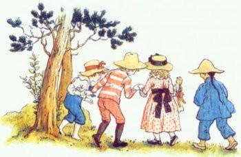The idea was fascinating to the point of being irresistible. The eyes of the four children became rounder and rounder. They seized each other's hands and swung them backwards and forwards, occasionally lifting their legs in a solemn rhythmic movement known only to childhood.
