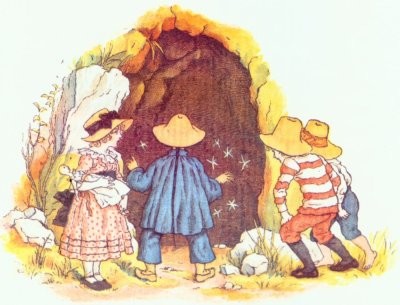 "Listen," he continued, in a silence broken only by the gentle sucking of bull's eyes. "Many years ago the old Red Rovers of these parts locked up all their treasures in a secret cavern in this mountain. They used spells and magic to keep it from being entered or found by anybody, for there was a certain mark upon it made by a peculiar rock that stuck out of it, which signified what there was below. Long afterwards, other Red Rovers who had heard of it, came here and spent days and days trying to discover it; digging holes and blasting tunnels like this, but of no use! Sometimes they thought they discovered the magic marks in the peculiar rock that stuck out of it, but when they dug there they found no treasure. And why? Because there was a magic spell upon it. And what was that magic spell? Why, this! It could only be discovered by a person who could not possibly know that he or she had discovered it, who never could or would be able to enjoy it, who could never see it, never feel it, never, in fact know anything at all about it! It wasn't a dead man, it wasn't an animal, it wasn't a baby!"