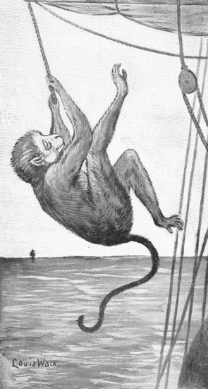 One day Tricky was hanged—formally, deliberately, and judicially hanged. What had he done? He had killed the ship cat. It was a deliberate murder, with no extenuating circumstances, and a rope, with a noose, was swung over the yard-arm, and Tricky run up in the presence of all the crew. This happened about eight bells, and at dusk Tricky was still hanging there, very quiet and motionless. Next morning Tricky was still there—as live as you are. Tricky was not hanged, he was only hanging; and, as everybody knows, monkeys rather like hanging. In fact, though Tricky was still up there, he had got his hands well round the rope, and was on the whole fairly at home. The rope round a neck like Tricky's was a mere boa.