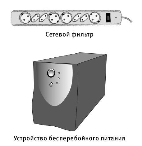 ✓ Сетевой фильтр и устройство бесперебойного питания – устройства, которые помогают защитить ваш компьютер от скачков напряжения или отключения электроэнергии.