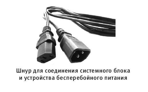 Для подключения к системному блоку устройства бесперебойного питания должен прилагаться другой шнур.