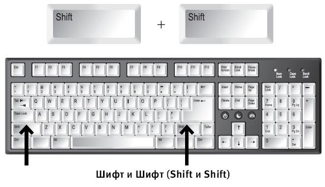 ✓ Shift и Shift (на клавиатуре две таких клавиши справа и слева).