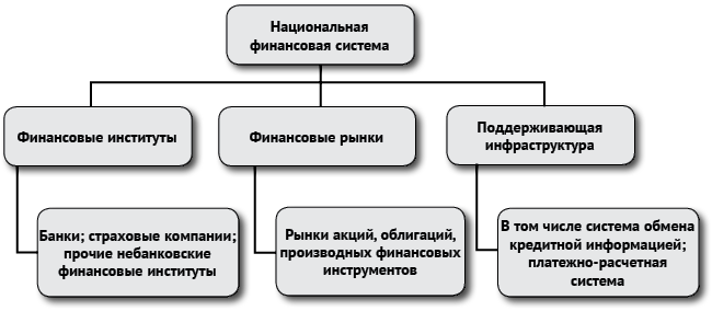 В иностранной литературе преобладает структурный подход, в соответствии с которым финансовая система понимается в более узком смысле как «совокупность рынков и институтов, используемых для заключения финансовых сделок, обмена активами и рисками»13.