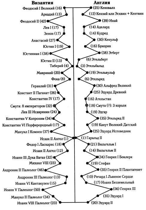 Рис. 41. Англо-византийское династическое соответствие. Конец параллелизма