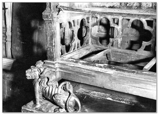 Кресло с высокой спинкой было изготовлено между 1297 и 1300 годами в готическом стиле из дуба плотником, известным как мастер Уолтер, который получил значительную сумму за свою работу – 100 шиллингов. Четыре позолоченные фигурки львов выполняют функцию ножек кресла. Это сравнительно недавно реконструированный элемент, обновленный в 1727 году. Фигурки заменили аналогичных львов, которые были добавлены к креслу в XVI веке. Пространство под сиденьем кресла представляет собой платформу и полость, рис. 17, где до 1996 года находился Скунский Камень. Теперь Камень возвращен в Шотландию с условием, что его будут привозить и помещать в Кресло Эдуарда в Англии к очередной коронации.