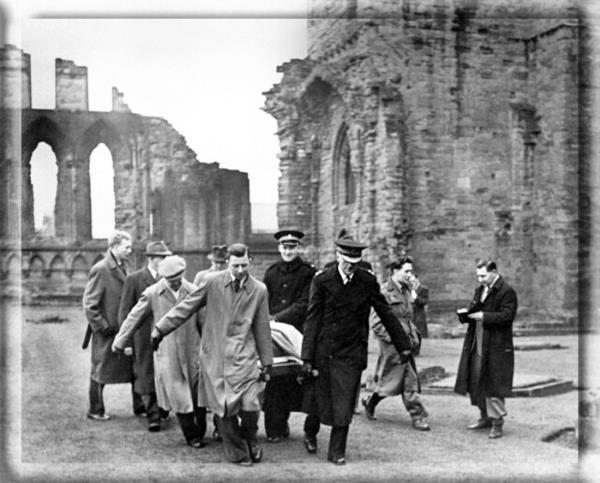 Не желая превращать символическое похищение в банальную кражу, эти студенты 11 апреля 1951 года принесли Камень в развалины Арбротского аббатства, знаменитого тем, что здесь в начале XIV века была принята декларация о независимости Шотландии. На рис. 22 показаны развалины этого аббатства. Затем студенты анонимно сообщили полиции о его местонахождении. Власти возвратили Камень в Вестминстерское аббатство только в феврале 1952 года, и он был вновь помещен в основание Коронационного Трона. В 1953 году на нем была коронована английская королева Елизавета II.