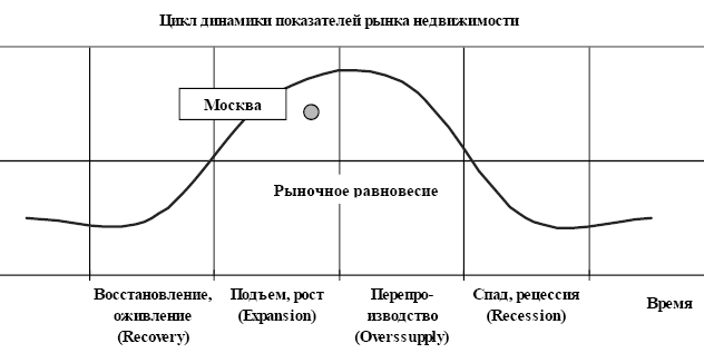 Изученные авторами эмпирические данные о циклах рынка недвижимости, проявившихся в России за 25 лет его становления и развития, изложены в разделе 5.5.