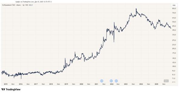В аналитической платформе необходимо найти нужную компанию, настроить на графике дневной таймфрейм и уменьшить размер графика таким образом, чтобы на экране он полностью уместился. Одного взгляда будет достаточно, чтобы понять, что происходило с акциями за такой длительный срок: они росли, падали или находились в балансе.