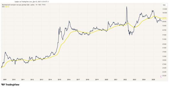 Такие важнейшие выводы даёт нам анализ графика экспоненциальной скользящей средней длиной в 90 (ЕМА-90) (рисунок 1.2).