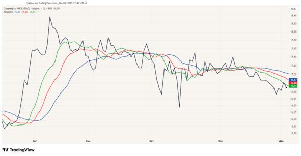 Попробуй с акциями компаний из прошлого задания (LKOH, NLMK, SGZH, AKRN) проанализировать тренды с помощью двух инструментов: ЕМА- 90 и Аллигатора. Выдели для самого себя временные периоды, в которых Аллигатор помогает тебе идентифицировать восходящую или нисходящую тенденцию и подтверждает выводы, полученные с помощью ЕМА-90.