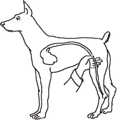 Термометрия. Определение температуры проводят ректально в течение не менее 10 минут. Более удобны контактные электротермометры. У здоровых собак температура тела колеблется в пределах 37,5–39,0 °С.