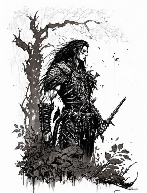 В голове мигом пронеслись тревожные мысли. Ноги одеревенели. Я всем телом ощущала опасность, исходившую от незваного гостя. Он напоминал хищника: тонкая бледная кожа, острые черты лица, длинные волосы цвета вороного крыла. Сам он — высокий и статный, не мускулистый, скорее, стройный. Черная кожаная броня с шипастыми наплечниками и наколенниками придавали ему еще более зловещий вид.