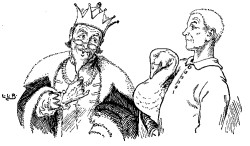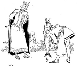 Tom soon began to long to see his parents again, and begged the King to allow him to go home for a short time. This was readily permitted, and the King told him he might take with him as much money as he could carry.