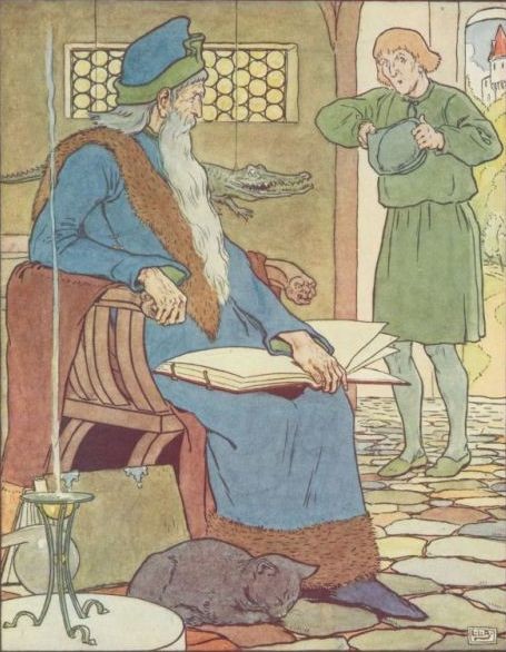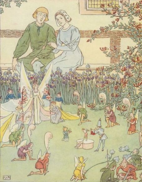 Long ago, in the merry days of good King Arthur, there lived a ploughman and his wife. They were very poor, but would have been contented and happy if only they could have had a little child. One day, having heard of the great fame of the magician Merlin, who was living at the Court of King Arthur, the wife persuaded her husband to go and tell him of their trouble. Having arrived at the Court, the man besought Merlin with tears in his eyes to give them a child, saying that they would be quite content even though it should be no bigger than his thumb. Merlin determined to grant the request, and what was the countryman's astonishment to find when he reached home that his wife had a son, who, wonderful to relate, was no bigger than his father's thumb!