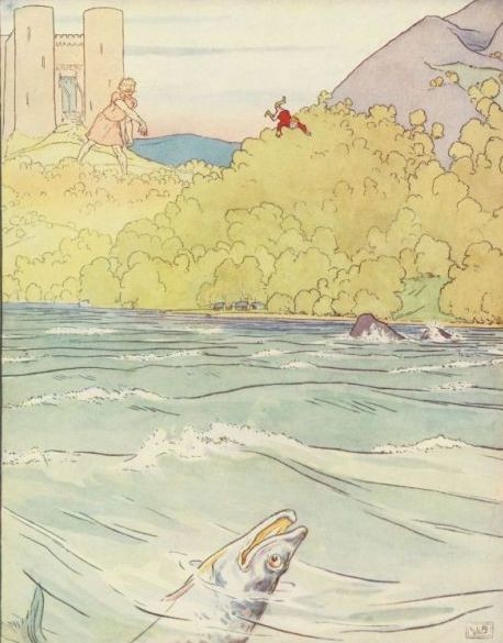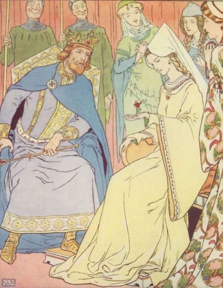The Queen was delighted with the little boy, and made him dance a gaillard on her left hand. He danced so well that King Arthur gave him a ring, which he wore round his waist like a girdle.