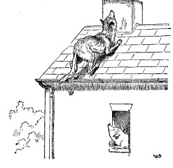 Then the Wolf was very angry indeed, and declared he would eat up the little Pig, and that he would get down the chimney after him.