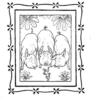 Once upon a time there was an old Sow with three little Pigs, and as she had not enough to keep them, she sent them out to seek their fortune.