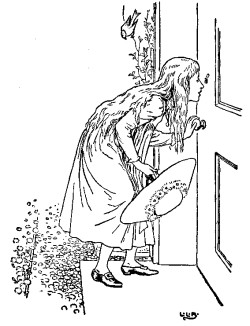 One day, after they had made the porridge for their breakfast, and poured it into their porridge-pots, they walked out into the wood while the porridge was cooling, that they might not burn their mouths by beginning too soon to eat it. And while they were walking, a little Girl called Goldenlocks came to the house. First she looked in at the window, and then she peeped in at the keyhole; and seeing nobody in the house, she turned the handle of the door. The door was not fastened, because the Bears were good Bears, who did nobody any harm, and never suspected that anybody would harm them. So Goldenlocks opened the door, and went in; and well pleased she was when she saw the porridge on the table. If she had been a thoughtful little Girl, she would have waited till the Bears came home, and then, perhaps, they would have asked her to breakfast; for they were good Bears—a little rough or so, as the manner of Bears is, but for all that very good-natured and hospitable. But the porridge looked tempting, and she set about helping herself.