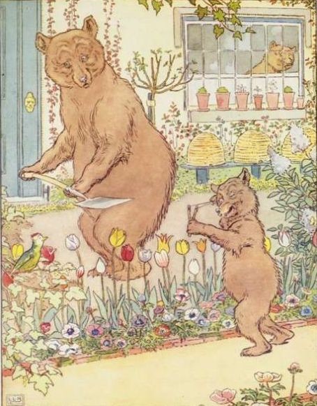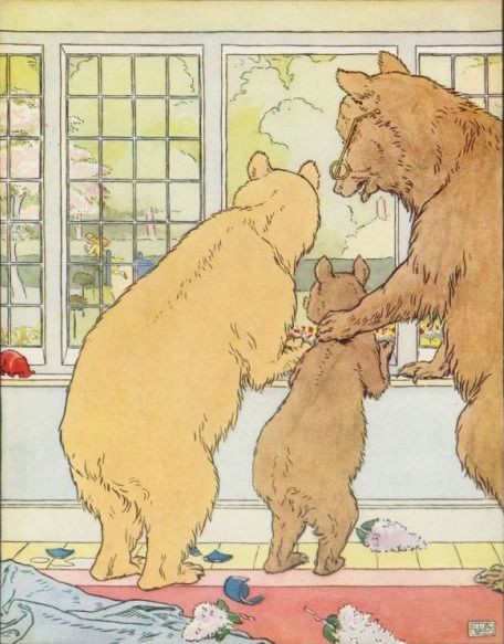 "SOMEBODY HAS BEEN AT MY PORRIDGE!" said the Middle Bear, in her middle voice. Then the Little, Small, Wee Bear looked at his, and there was the spoon in the porridge-pot, but the porridge was all gone.