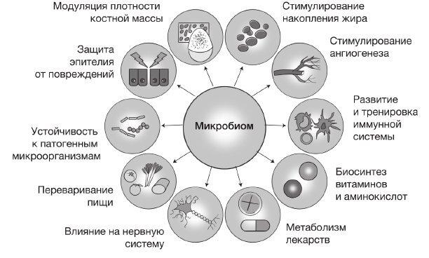 Если проще, то целый ряд функций, которые выполняют в теле человека микробы, мы самостоятельно выполнить не можем, а функции эти являются жизненно важными. Например, биосинтез витаминов и кофакторов, участие в метаболизме углеводов, транспорт олигосахаридов, многоатомных спиртов, фосфатов и аминокислот, синтез АТФ, метаболизм пуриновых и пиримидиновых оснований (необходимых для ДНК) и многое другое. А еще микробы по сути выступают тренерами нашей иммунной системы, о чем мы поговорим далее.