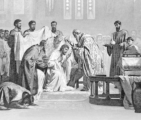 В 988 году Владимир принял христианство. Обстоятельства, предшествовавшие этому событию и сопровождавшие его, рассказываются с баснословными чертами, которые вполне свойственны изустным преданиям, записанным спустя уже довольно долгое время после означенного события. Достоверно только то, что Владимир крестился и в то же время вступил в брак с греческой царевной Анной, сестрой императоров Василия и Константина. Его крещение, вероятно, происходило в Корсуне, или Херсоне, греческом городе на юго-западном берегу Крыма; и оттуда Владимир привез в Киев первых духовных и необходимые принадлежности для христианского богослужения. В Киеве он крестил своих сыновей и народ. Жители без явного противодействия крестились в Днепре, отчасти потому, что в самом Киеве уже значительно распространено было христианство и христиане не составляли там незначительного меньшинства, а более всего оттого, что у русских язычников не было жреческого сословия, которое бы разъяснило народу преступность такого переворота с языческой точки зрения и призывало бы толпу к сопротивлению. Самое древнее русско-славянское язычество не имело определенного характера, общего для всех, в смысле положительной религии, и состояло из множества суеверий и представлений, которые при невежестве и впоследствии легко уживались с внешним принятием христианства. Большинство вступало в новую веру и совершало обряд крещения, не понимая, что делает. Борьба язычества с христианством выражалась в продолжительном соблюдении языческих приемов жизни и сохранении языческих суеверий; такая борьба происходила в течение многих веков после Владимира, однако она не мешала русскому народу принять крещение, в котором сначала он не видел ничего противного, потому что не понимал его смысла. Только постепенно и для немногих открывался действительно свет нового учения.
