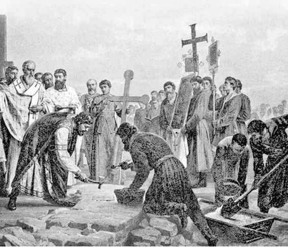 Митрополит Петр закладывает Успенский собор в Московском Кремле