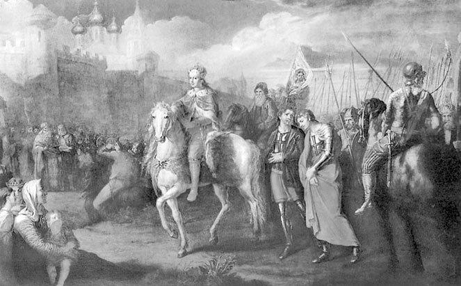 Тогда Александр сказал псковичам: «Братья и друзья мои! Пусть не будет на вас из-за меня проклятия и отлучения; я уеду, а вы целуйте крест не выдавать моей княгини».