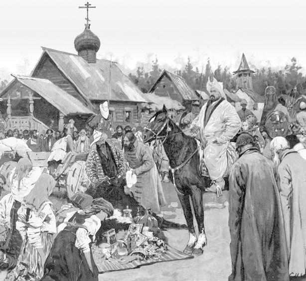 Но не в одном Новгороде – и в покоренных русских землях прежние свободные привычки не вынесли еще рабства и утеснения. Монгольскую дань взяли тогда на откуп хивинские купцы, носившие название «бесермен», – люди магометанской веры. Способ сбора дани был очень отяготителен. В случае недоимок откупщики насчитывали большие проценты, а при совершенной невозможности платить брали людей в неволю. Кроме того, они раздражали людей неуважением к христианской вере. Народ вскоре пришел в ожесточение; в городах Владимире, Суздале, Ростове, Переяславле, Ярославле и других по старому обычаю зазвонили на вече и по народному решению перебили откупщиков дани. В их числе в Ярославле был Изосим, русский по происхождению. Прежде он был монах, пьяный и развратный; съездив в Орду, принял там магометанство и, вернувшись в отечество, стал откупщиком дани, безжалостно утеснял своих соотечественников и нагло ругался над святыней христианской церкви. Ярославцы убили его и бросили труп на растерзание собакам и воронам. Зато в Устюге один природный татарин, будучи также сборщиком дани, спасся от общей беды. Его звали Буга. В Устюге он взял себе наложницу, дочь одного тамошнего обывателя, по имени Мария, которая полюбила его и заранее известила о грозившей ему опасности. Буга изъявил желание креститься. Народ простил его. Он был назван в крещении Иоанном, женился на Марии, навсегда остался на Руси и приобрел всеобщую любовь. Память о нем осталась навсегда в местных преданиях, а воспоминание о бесерменах до сих пор слышится в бранном слове «басурман», которым русский человек называл некрещеных, а иногда только неправославных людей.
