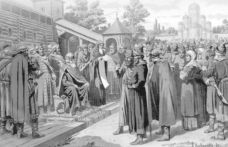 Киевский князь Святополк и Владимир звали Олега в Киев на совет об обороне Русской земли. «Иди в Киев, – говорили ему князья, – здесь мы положим поряд о Русской земле пред епископами, игуменами, перед мужами отцов наших и перед городскими людьми, как нам оборонять Русскую землю». Но Олег высокомерно ответил: «Не пристало судить меня епископам, игуменам и смердам» (то есть мужичью, переводя на наш способ выражения).